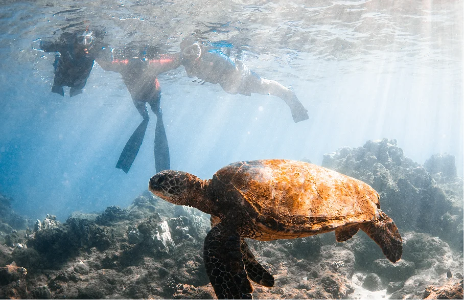 Snorkeling for non-swimmers for the first time! Join our team on one of the most beautiful fully GUIDED snorkeling tours at one of the best snorkeling destinations in Maui, Hawaii, home to hundreds of marine life, including Hawaiian sea turtles.
