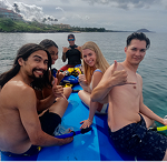 Snorkel mask, fins, life jacket, and warm wetsuit top